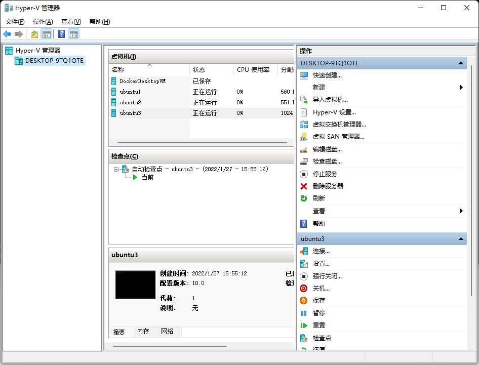 如果是使用Hyper虚拟化安装的multipass,可以在hyper管理器中查看实例状态