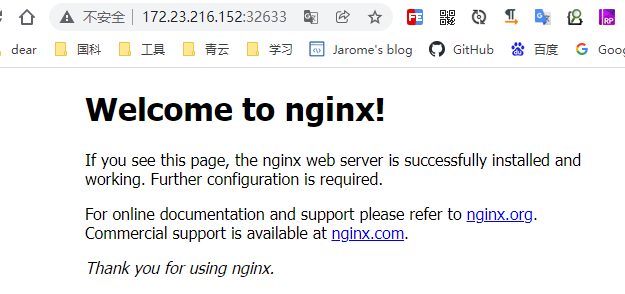 这里部署的svc的端口是32633,部署完成后,在宿主机访问端口,能访问成功,则代表部署完成
