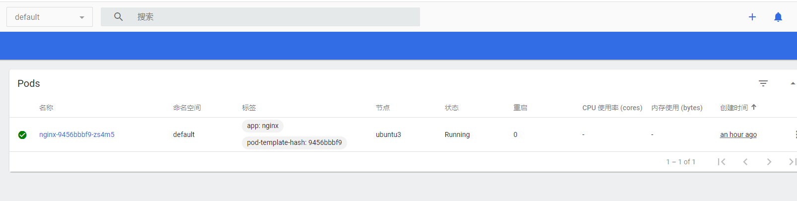 通过dashboard可轻松查看到前面通过命令创建的nginx应用