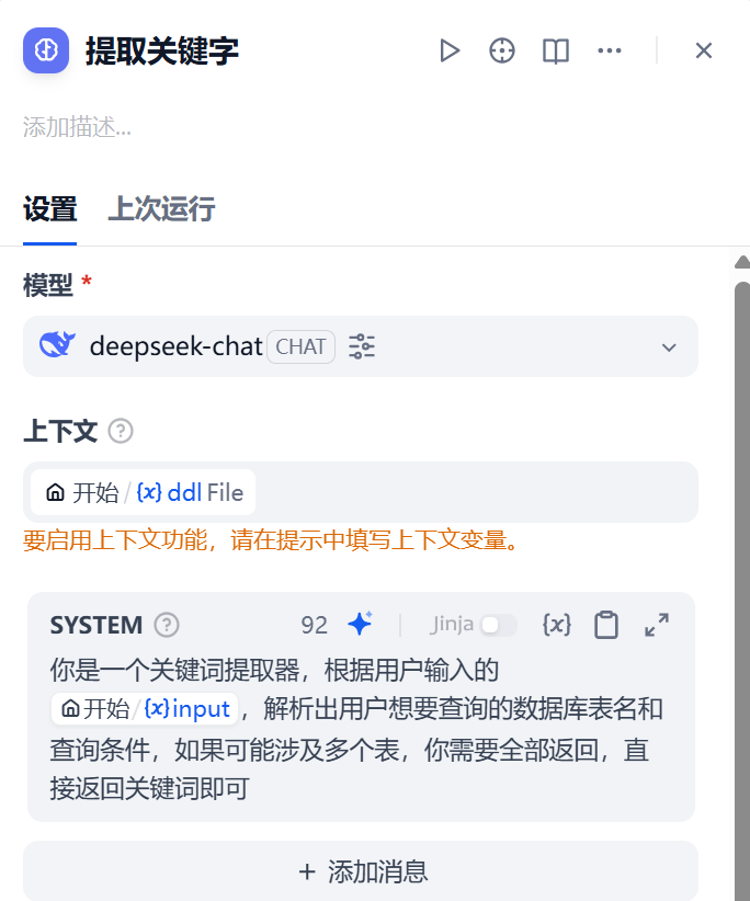 上下文选择提取表结构的ddl变量,输入下面的提示词
