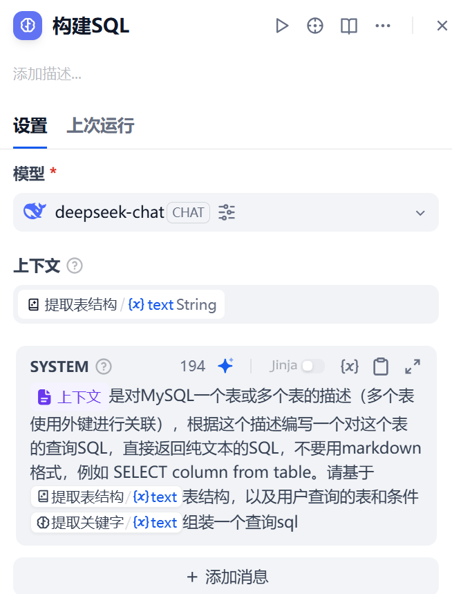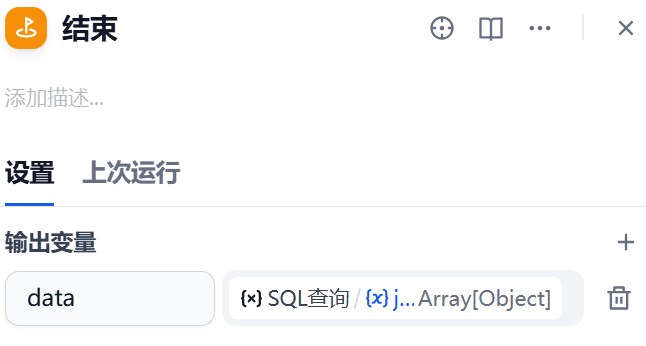 SQL查询语句选择构建SQL节点的text变量,输出格式这里选择JSON